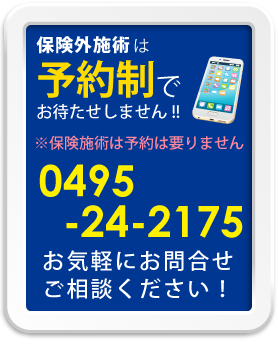 | 2回目以降 | 2980円(税別) | 検査から施術まで約30分 | |